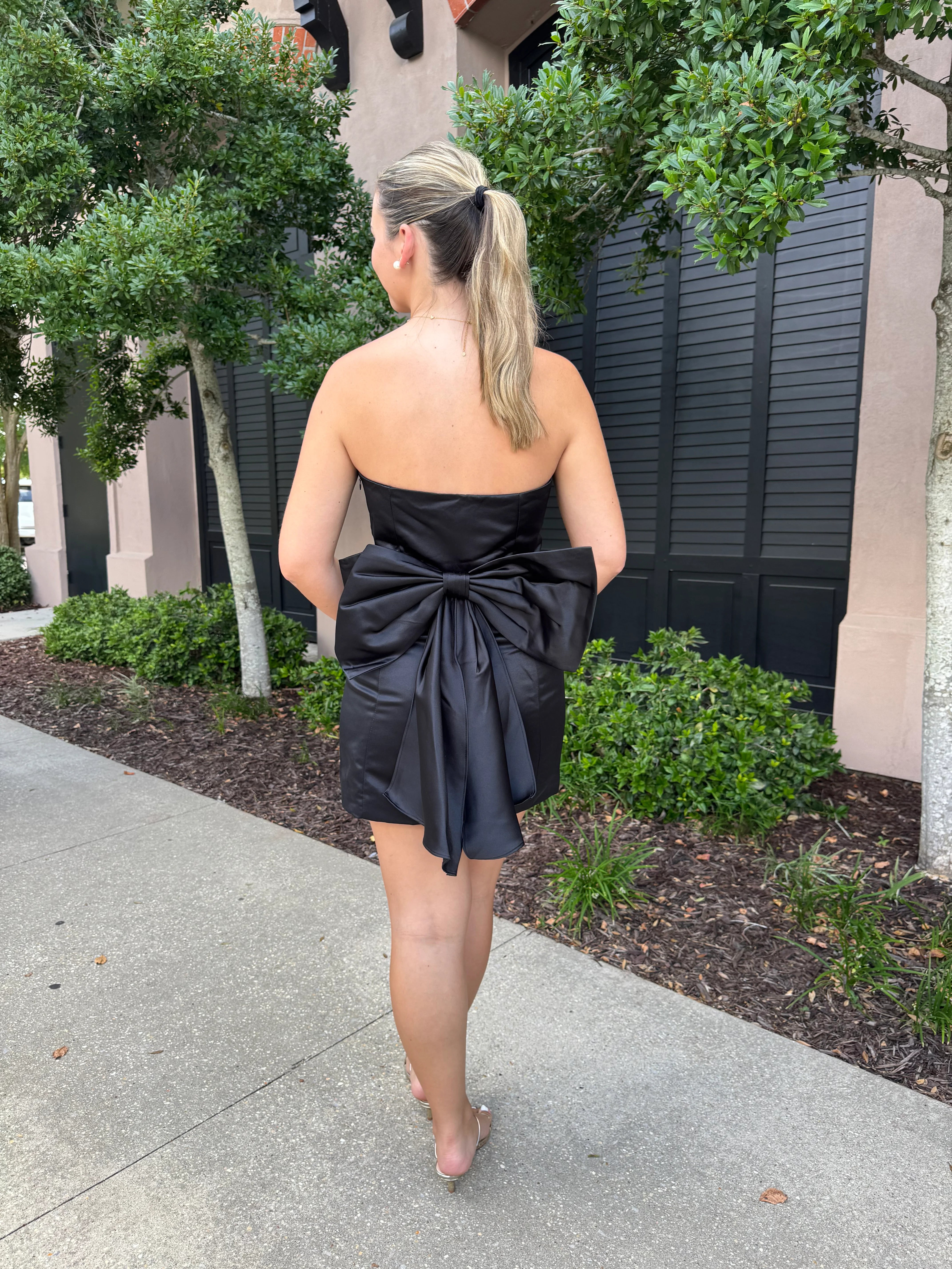 Melody Bow Back Taffeta Mini Dress