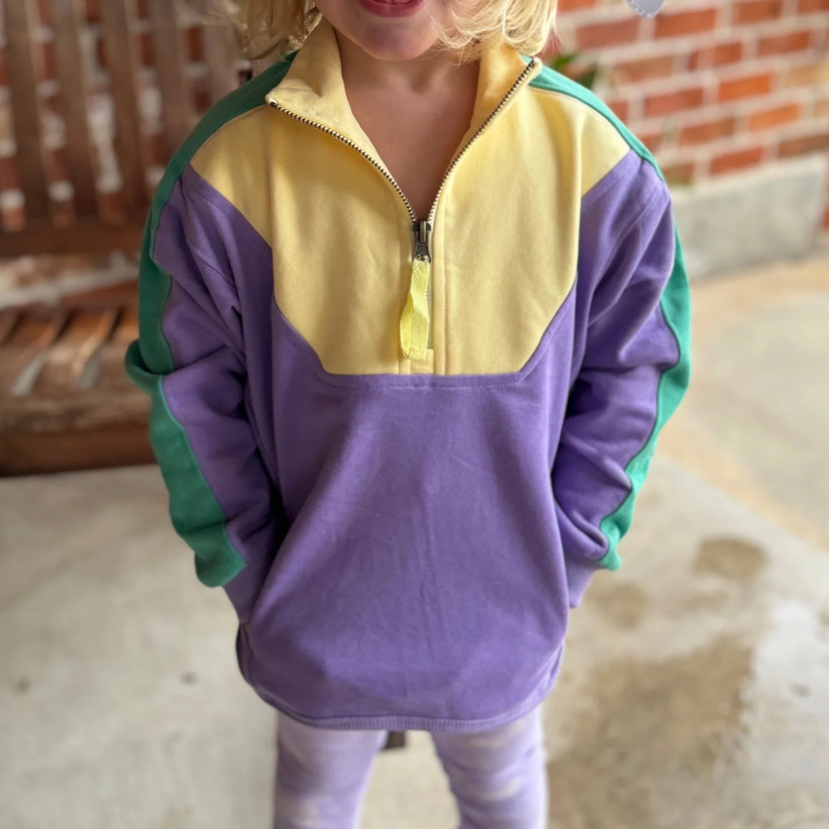 Nola Mercantile Kids Pastel Mardi gras 1/4 Zip Fleece