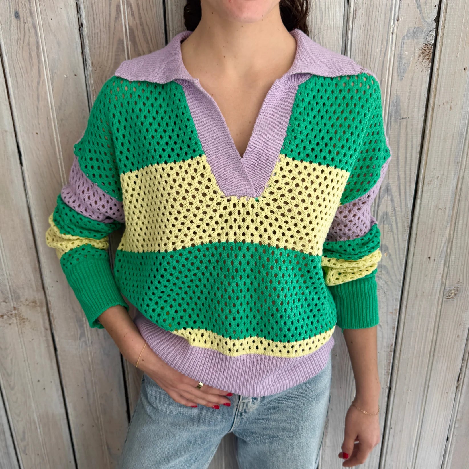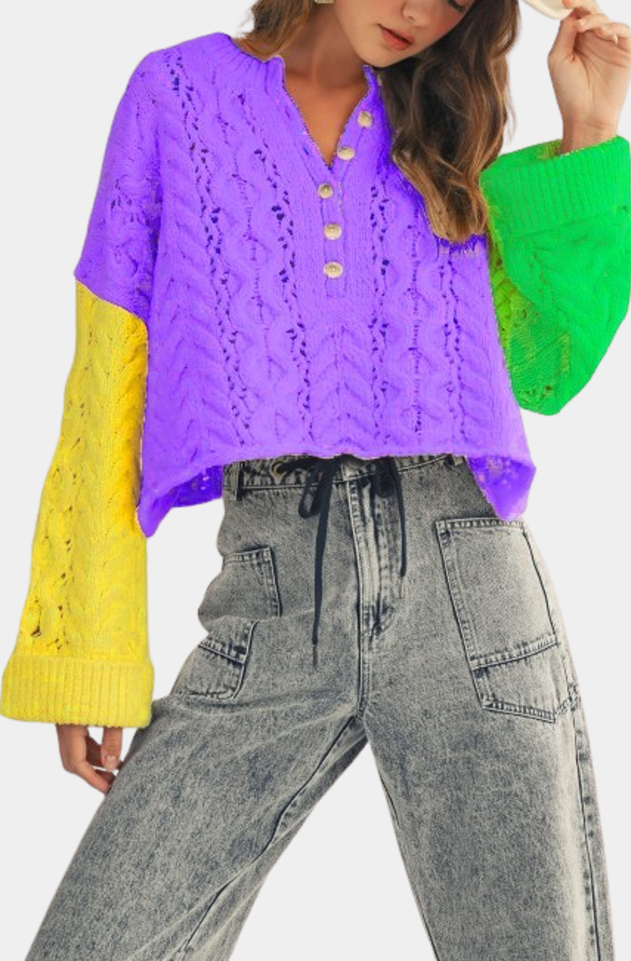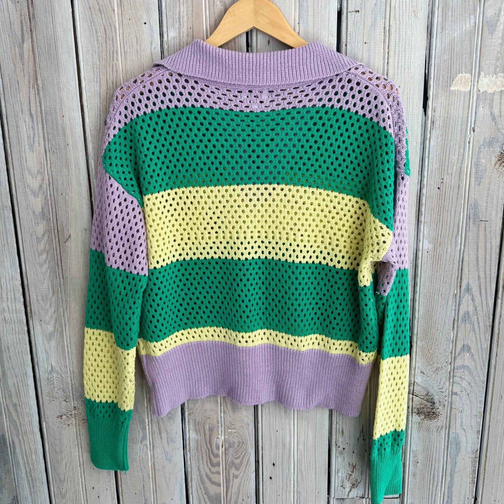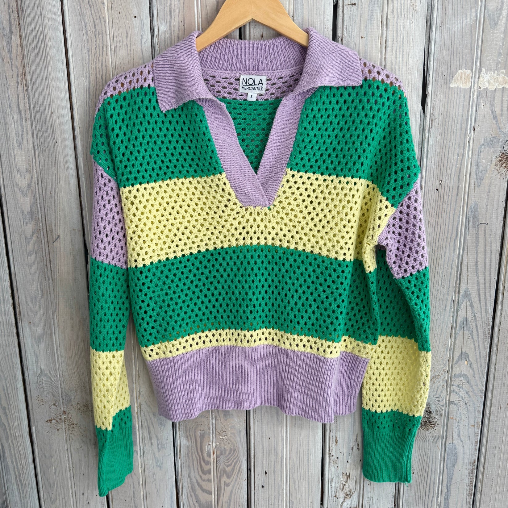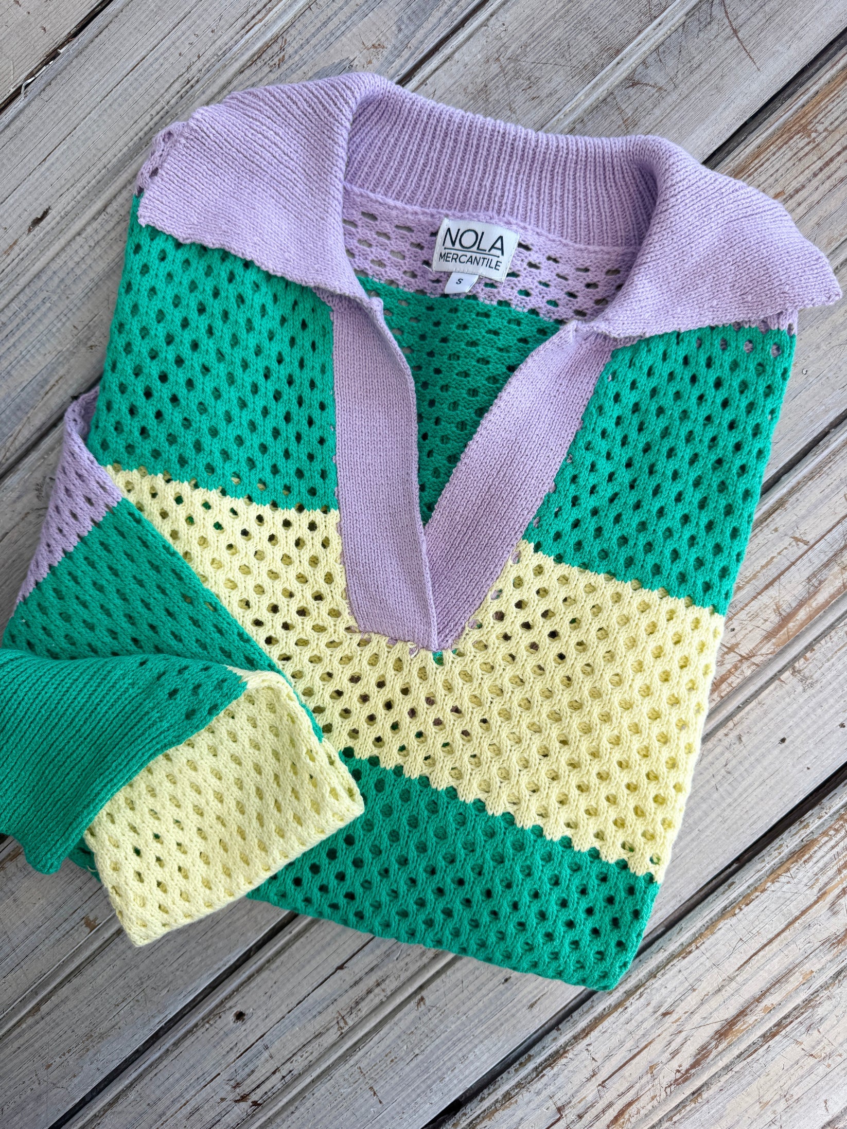 Nola Mercantile Ivory Mardi Gras Loose Knit Short Sleeve